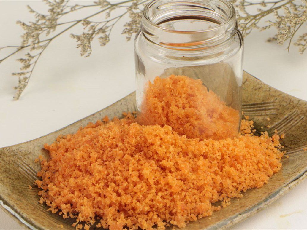 4. Hoàn thành: Sao cho đến khi ruốc khô, tơi xốp, có màu vàng cam/đỏ tươi là đạt yêu cầu.