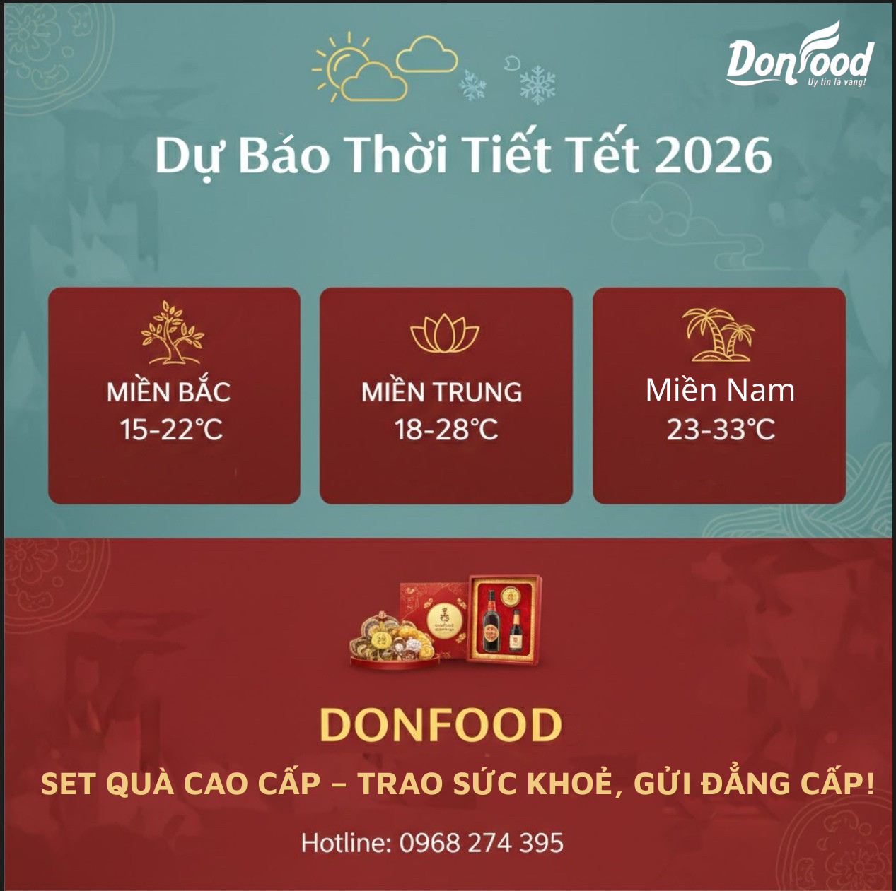 0968 274 395CHỦ ĐỘNG ĐÓN XUÂN 2026: THỜI TIẾT TẾT & GỢI Ý CHUẨN BỊ TỪ DONFOOD