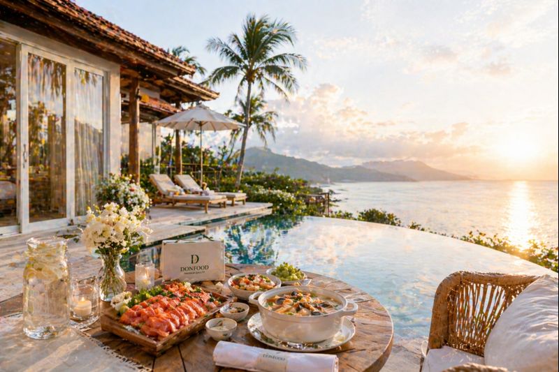 Điểm đáng chú ý là xu hướng thuê villa riêng để nghỉ dưỡng ngày càng phổ biến. Thay vì phụ thuộc hoàn toàn vào nhà hàng, du khách lựa chọn tự tổ chức những bữa ăn riêng tư. Đây là lúc thực phẩm từ Donfood phát huy tối đa lợi thế: cá hồi Na Uy, cá saba Nhật, bò Mỹ… đều được sơ chế tiện lợi, giúp bạn dễ dàng chuẩn bị một bữa ăn chuẩn nhà hàng ngay tại nơi lưu trú.
