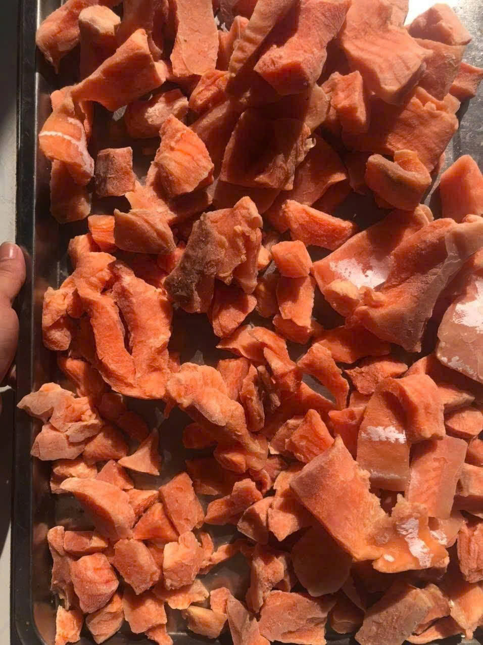 Vụn Hồi Nauy nạo hạt cơm: 169,000đ/kg (đóng gói 1kg)